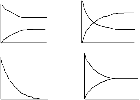 · The reactant and product concentrations as equilibrium is approached (two graphs)
